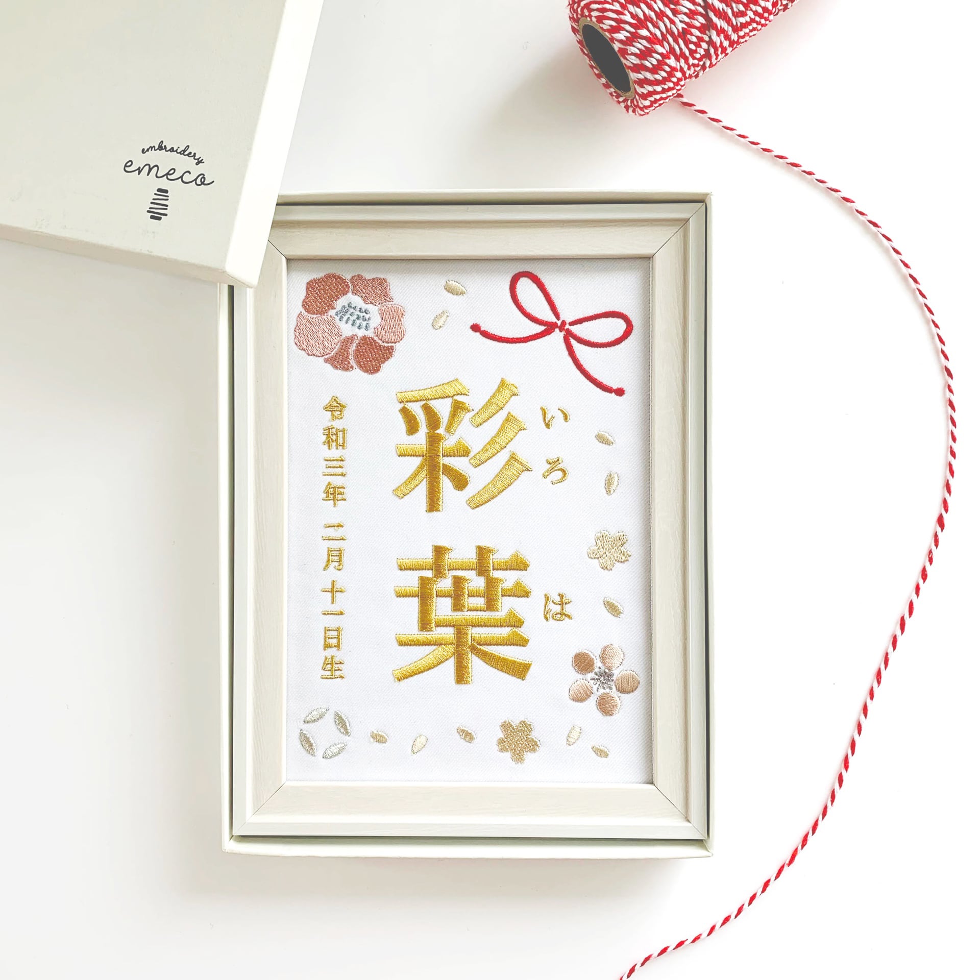 刺繍命名書(ホワイト・選べるフレーム付・2Lサイズ)女の子 | 名入れ | ひな祭り | 出産祝い