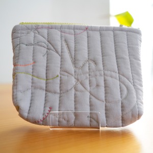 スムースヌビ生地の刺繍ポーチ(イエロー)