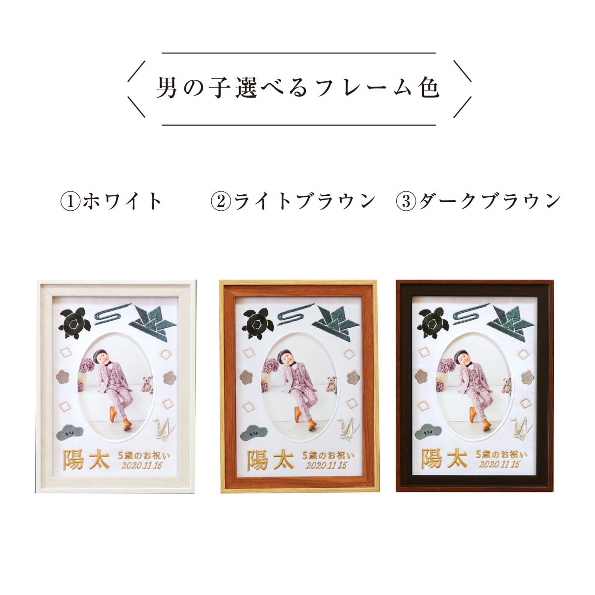 お祝い記念の刺繍フォトフレーム(ホワイト・選べるフレーム付・2Lサイズ)男の子 | 出産祝い | 端午の節句 | 七五三 | 誕生日 | 入園・入学祝 | 名入れ